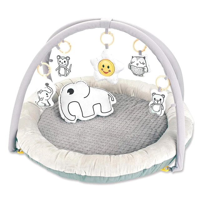 ¡Descubre el Gimnasio Sensorial Elephant de Babify! Estimula los cinco sentidos de tu bebé con elementos sensoriales, juguetes incluidos y 8 melodías musicales. Ideal para jugar boca abajo, aprender y descubrir señales, sonidos, texturas y más. ¡No te lo pierdas! Medidas: 85x85 cm.