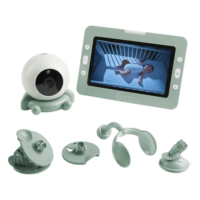 Babyphone Vidéo Babymoov Yoo Go - Batterie Rechargeable Longue Autonomie - 4 Accessoires Supports Caméra Inclus - Grand Écran 5" - Garantie À Vie