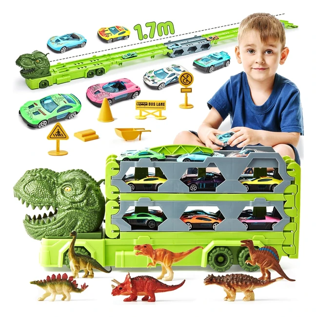 Baichun Dinosaurio Transportador de Camiones de Juguete para Nios 3-6 Aos con 6 Vehculos y 6 Dinosaurios