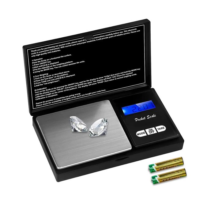 Balance de précision 001g à 500g - Technologie de détection précise - Conversion facile entre 7 unités de pesage - Écran LCD rétroéclairé - Fonction d'arrêt automatique - Fonction de tare pour peser les liquides et les poudres - Portable et durable - Idéale pour café, farine, bijoux, médicaments, pierres précieuses - Parfait comme cadeau