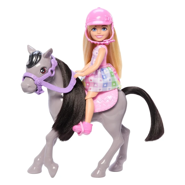 Barbie Chelsea et son poney - Coffret avec bombe et selle - Poupée articulée - Monter facilement - HTK29