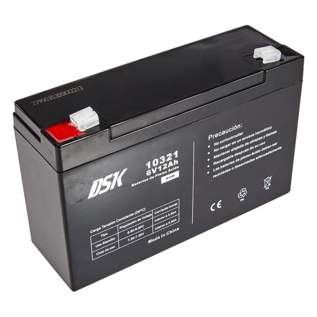 Batterie Plomb AGM Rechargeable 6V 12Ah DSK 10321 - Voitures & Motos Electriques