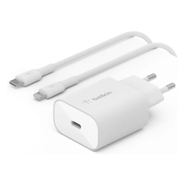 Belkin 25W Power Delivery USB-C PPS Charger + USB-C/Lightning MFI Cable - Schnellladegerät für iPhone 14/14 Plus, 13, 12, 11 Pro/Pro Max/Mini