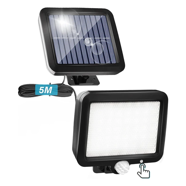 Über dieses Produkt: Superhelle Solarleuchten für den Außenbereich mit 120° Weitwinkelbeleuchtung. Der aktualisierte PIR-Bewegungssensor erkennt Personen in einer Entfernung von 0,5 m und bietet eine superhelle Beleuchtungsintensität für einen großen Bereich. Umweltfreundlich und effizient, mit eingebautem 1200mAh Lithium-Ionen-Akku und 10-12 Stunden Arbeitszeit. Einfache Installation ohne Verkabelung. IP65 wasserdicht und hitzebeständig. Perfekt für Balkone, Terrassen, Flure, Treppen, Außenwände, Gärten, Garagen und Gehwege. Split-Design mit separaten Solarpanels und Lampengehäuse. Inklusive 5 m wasserdichtem Kabel. Plug-and-Play. Sensitive Bewegungssensor mit 0,5 m Erfassungsbereich. Wasserdicht nach IP65-Standard. Hochwertiges ABS-Harz und Polycarbonat. Siehe weitere Produktdetails.