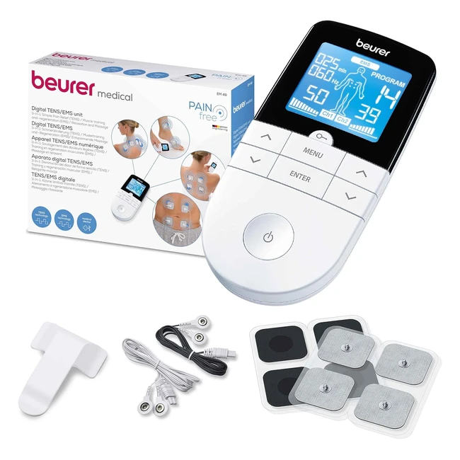 Beurer EM 49 Dispositivo Digital de Estimulación 3 en 1 para Alivio del Dolor y Entrenamiento - Blanco