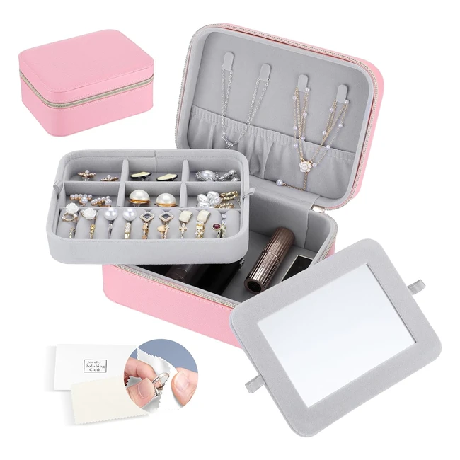 Boîte à bijoux voyage 2 couches PU pour femme avec miroir amovible en cuir synthétique