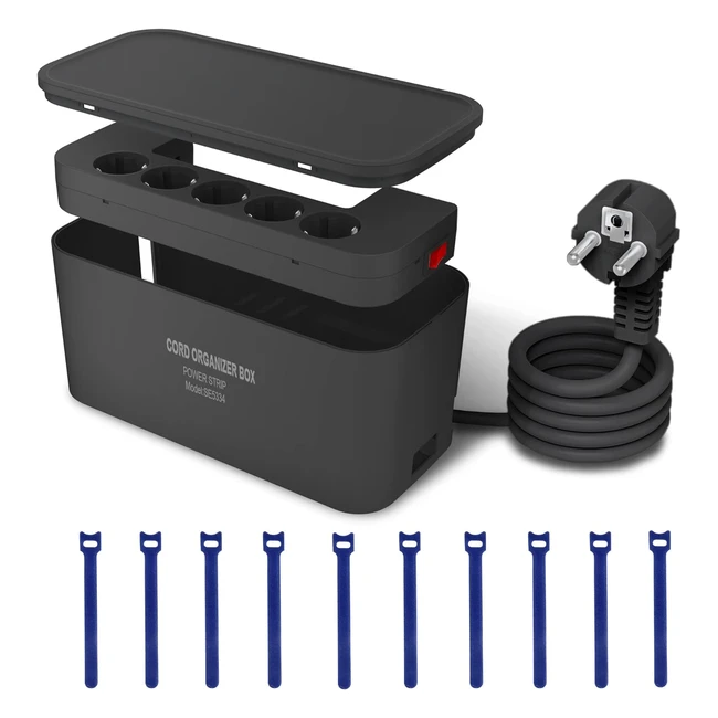 Boîtier de câble avec barrette de prises 5 voies et 3 connexions USB - Rangement de câbles 2500W