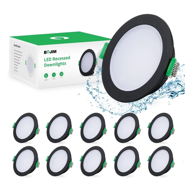 Bojim Spot LED Encastrable Noir IP65 10x 5.5W Extra Plat 30mm 220V 4000K Blanc Neutre