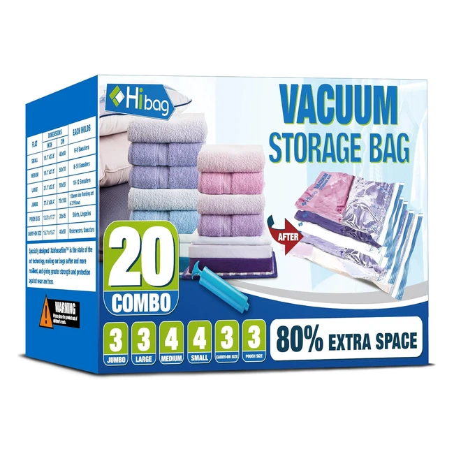 Bolsas de Almacenamiento al Vacío - Paquete de 20 Bolsas con Bomba de Mano - Ahorro de Espacio - Ropa de Cama, Edredón, Almohadas