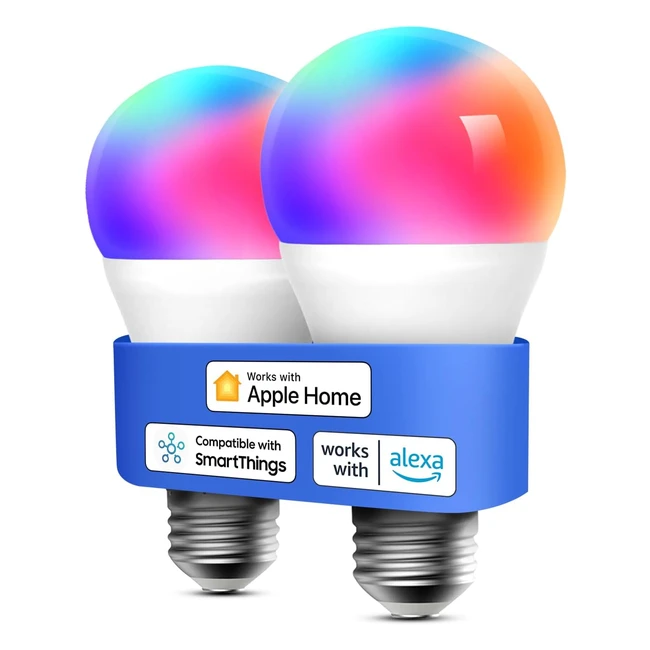 Bombilla Inteligente WiFi Meross RGBWW 9W E27 2700-6500K - Compatible con Apple HomeKit, Alexa, Google Home y SmartThings - 2 Piezas