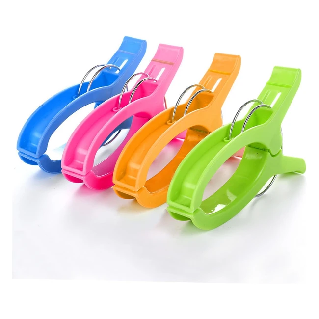 -15%Get 4 large beach towel clips in bright colors (blue, rose, orange, and green) - Jumbo size (15cm long, 8cm wide) with 135cm clip opening - Lightweight (32g) and easy to carry - Perfect for clamping towels, quilts, curtains, and laundry - Suitable for travel and home use - Rustproof, odorless, and environmentally friendly materials - Strong grip with zinc galvanized steel thick jaw and strong springs - Quality first with professional service from Bonilife