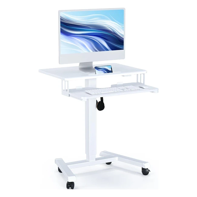 Bontec 65 45cm Estación de Trabajo Móvil con 4 Ruedas - Altura Ajustable - Blanco