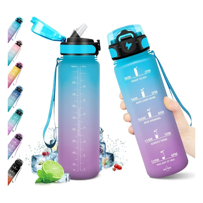 Botella Kollykolla 1L - Agua Deporte, Sin BPA, Prueba de Fugas