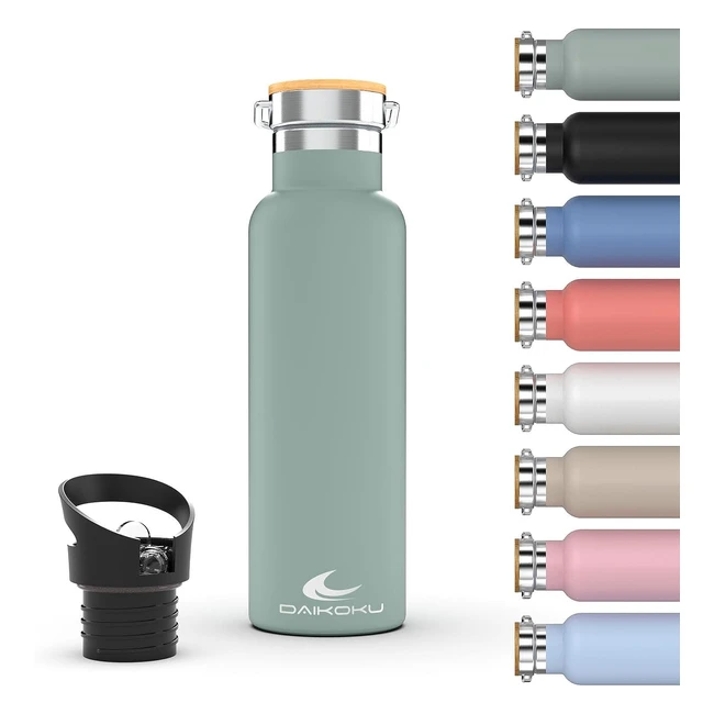 Botella Térmica Daikoku de Acero Inoxidable 750ml - Mantén tu Bebida Fría o Caliente por Horas - Tapones Intercambiables - Color Verde Pastel