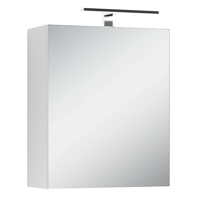Byliving Spree 50 Spiegelschrank Badezimmerschrank mit LED-Beleuchtung und Schalter und Steckdosenbox Hochwertig und Robust Melaminbeschichtung Spiegeltür mit Softclose-Funktion Glas Weiß Breite 50 cm