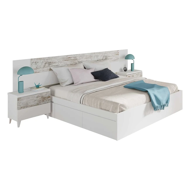 Cabezal y Mesitas Vintage Blanco Artik - Habitdesign Ref. 247 - Conjunto Matrimonio