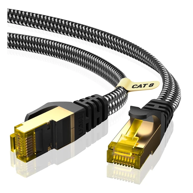 Vitesse supérieure - Le câble Ethernet CAT 8 d'Ariskeen prend en charge une bande passante jusqu'à 2000 MHz et une vitesse de transmission de 40 Gbps, idéal pour les serveurs, les jeux et le streaming HD. Conception anti-interférence - Composé de 4 paires torsadées blindées S/STP pour une protection optimale contre les interférences. Connecteurs RJ45 plaqués or de 50 microns pour une transmission stable. Peu encombrant - Design plat pour éviter les nœuds, économiser de l'espace et une installation propre. Large compatibilité - Rétrocompatible avec CAT7, CAT6A, CAT6, CAT5 pour ordinateurs, consoles, imprimantes, routeurs, smart TV, etc. Conception tressée durable - Gaine en nylon de qualité pour une durabilité et une protection maximales.