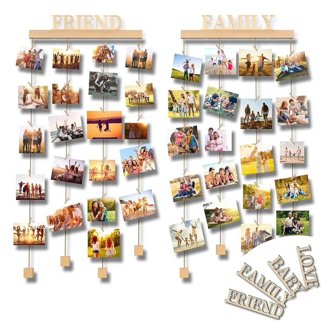 Cadre photo pele mele mural en bois avec 45 pinces et 4 lettres - Uping