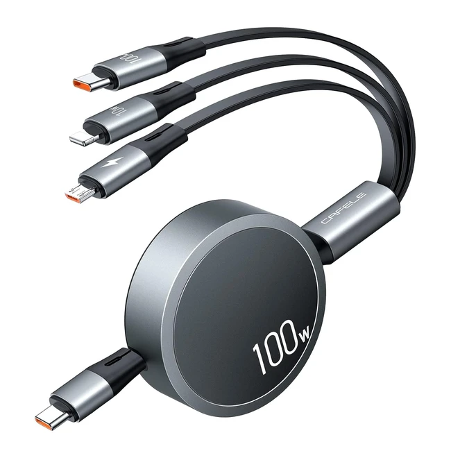 Cafele 2023 Pro Version USB C Cable 100W PD Super Fast Charging Cable 3 in 1 Retractable Charging Cable
