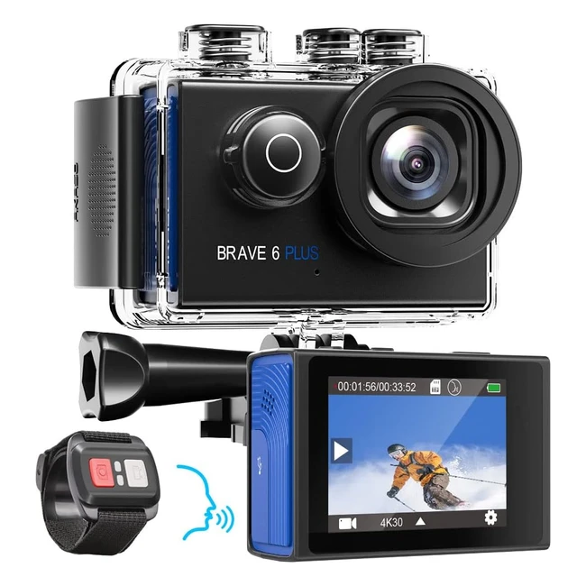 Cámara Deportiva Akaso Brave 6 Plus 4K30fps WiFi 20MP - Resistente al Agua 40m - Control por Voz - 2 Baterías y Kit de Accesorios