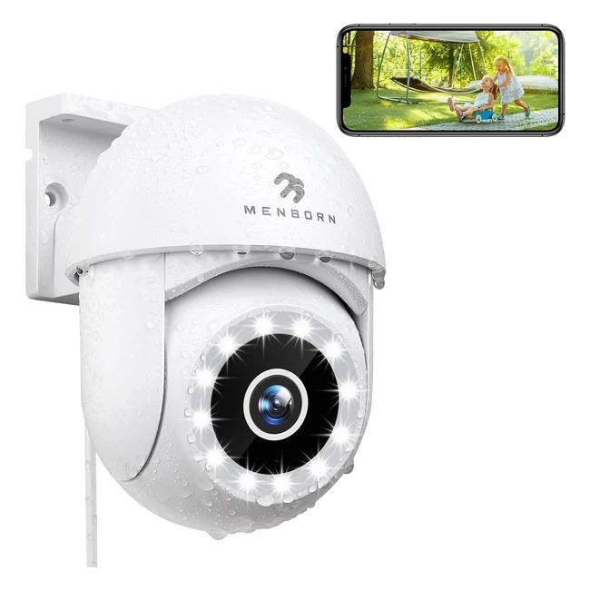Caméra surveillance extérieure 2K, rotation 360°, vision nocturne couleur, IP65, audio bidirectionnel