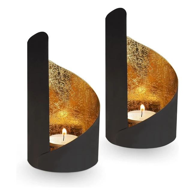 ¡Añade un toque de elegancia a tu hogar con este juego de 2 candelabros modernos! Hechos de metal negro resistente con un interior dorado brillante, estos portavelas crean una atmósfera cálida y acogedora. Perfectos para regalar o para decorar cualquier habitación.