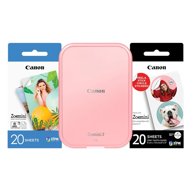 Canon Zoemini 2 Printing Kit - Photo Printer, Zinc Photo, 20 Piece, ZP2030, 20 Sheets, 10 Circle Stickers
