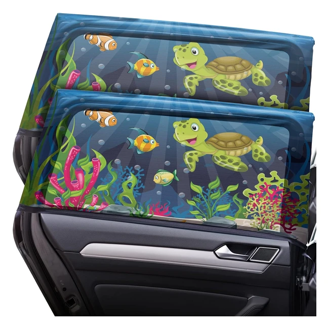 Caramaz Kinder Sonnenschutz UV-Schutz Größe L für mittlere und größere Fenster 2er Pack Schildkröten-Design