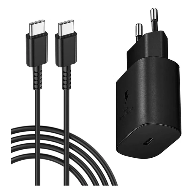 Cargador Samsung 25W USB C Carga Rápida para Galaxy S23 S22 S21 S20 Z Flip Note20 A54 A53 A3 A33 con 2m Cable Tipo C - Negro