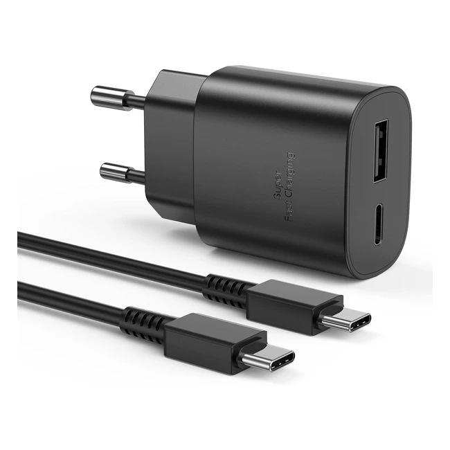 Caricabatterie Samsung 25W Caricatore USB C Rapido Doppia Porta Galaxy S22 S21 Ultra S20 S10 S9 A13