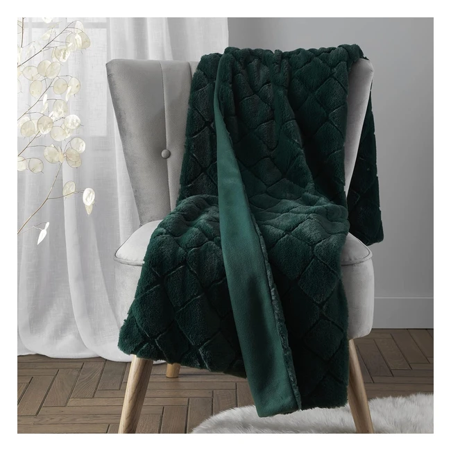 Catherine Lansfield Cosy Diamond Faux Fur Blanket Throw 130x170cm - Bottle Green
