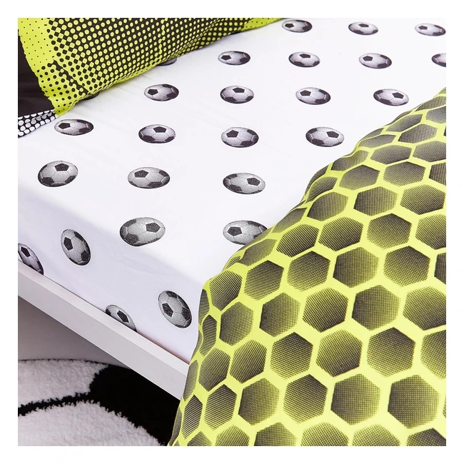-25%Complete the footy mad bedroom with this printed football fitted sheet from Catherine Lansfield. Add style and design to your child's room with this contemporary Great British design. Includes a single fitted sheet. Complete the look with matching curtains, duvet set, and coordinating accessories. Comfortable and easy care fabric. Genuine Catherine Lansfield product. Contact customer services for questions or feedback.