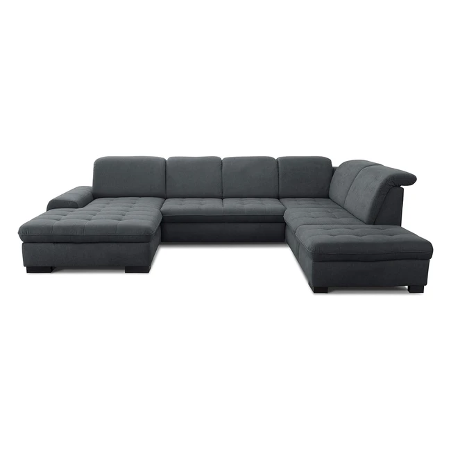 Cavadore Wohnlandschaft Lexi - Große U-Form, XXL-Longchair links, Kopfteilverstellung - Soft Clean, 329x8299x224, Flachgewebe dunkelgrau