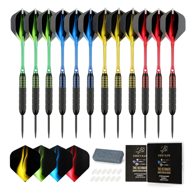 Centaur 12 Pack Steel Tip Darts Professional 2224g Set with Premium Aluminum Shafts & Pet Flights