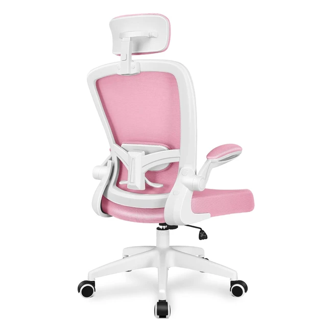 Chaise de bureau Felixking en maille avec accoudoirs rabattables - Soutien lombaire - Dossier haut en maille douce - 300 lb - Rose Sakura