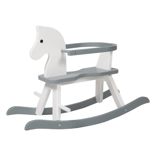 Cheval à bascule en bois massif avec anneau de protection amovible - Supporte 25 kg - Blanc/Gris