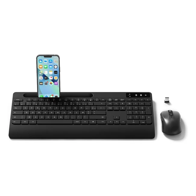Clavier Souris Sans Fil 24G OMOTON AZERTY Ergonomique Repose-Poignet Support Phone 18 Touches Fonction WindowsPC Noir