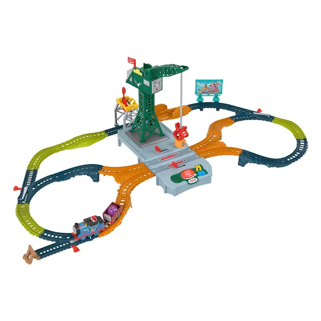 Vivez l'aventure avec ce coffret train miniature motorisé Thomas & ses amis ! Inclut la locomotive Thomas sonorisée, un wagon farceur, la grue Cranky et 440m de circuit. Stimule le jeu et l'imagination des enfants dès 3 ans.