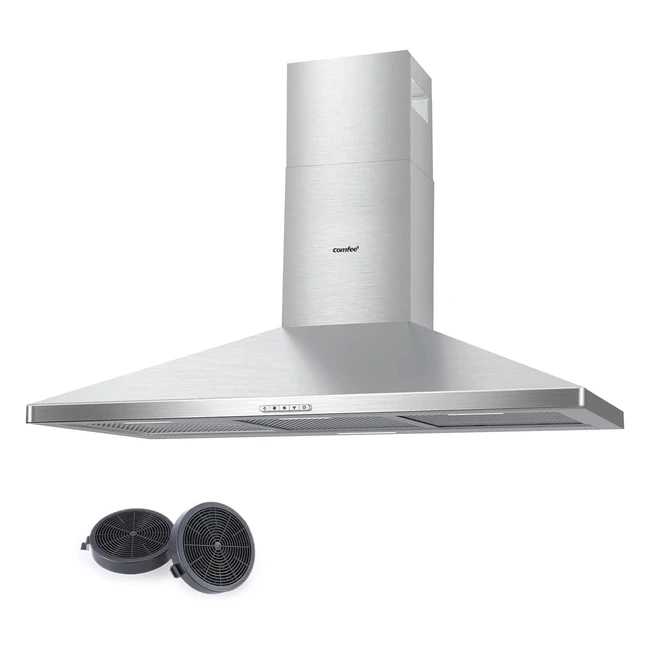 Comfee 90 cm Chimney Cooker Hood Class A Extractor Hood with LED and Recirculating Ducting System