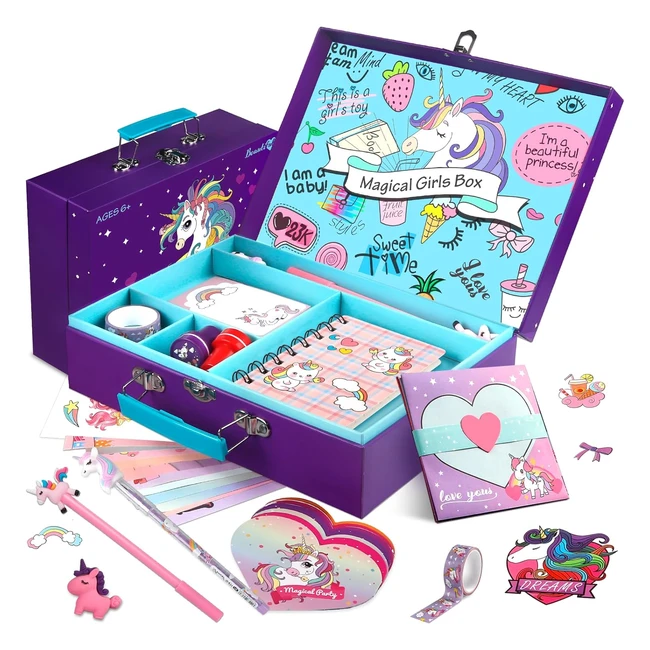 -18%Desata tu creatividad con este set de papelería mágica de unicornio. Incluye lápiz, pluma, goma de borrar, cinta adhesiva, pegatina de unicornio, bloc de notas, cuaderno, sellos, sobres, papel y tarjetas. Estuche de alta calidad para mantener todo organizado. Perfecto regalo para niñas de 6 a 10 años.