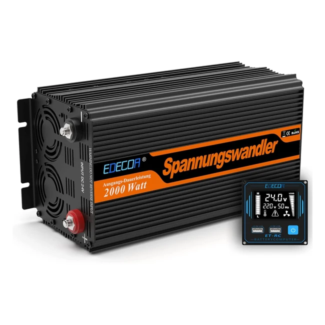 Convertisseur EDECOA 24V 220V Camion 2000W Onduleur Télécommande USB Panneau Solaire Onde Modifiée