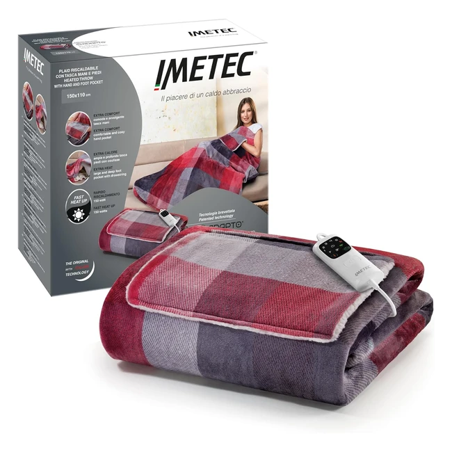 Coperta Elettrica Imetec Caldoplaid Velvet Tartan Plaid 150x110 cm - Tecnologia Adapto, Sicuro e Rapido Riscaldamento