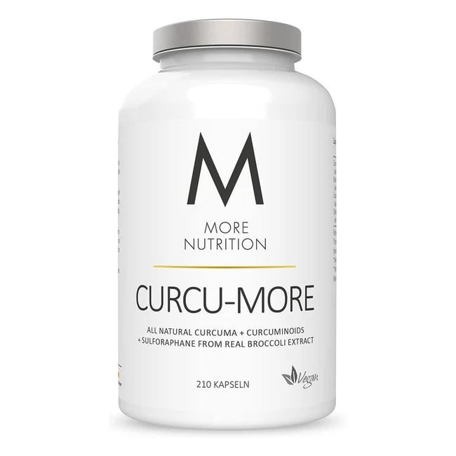 Curcumore 180g - 210 Bio-Kurkuma-Kapseln mit Curcuminoiden, Sulforaphan und Piperin