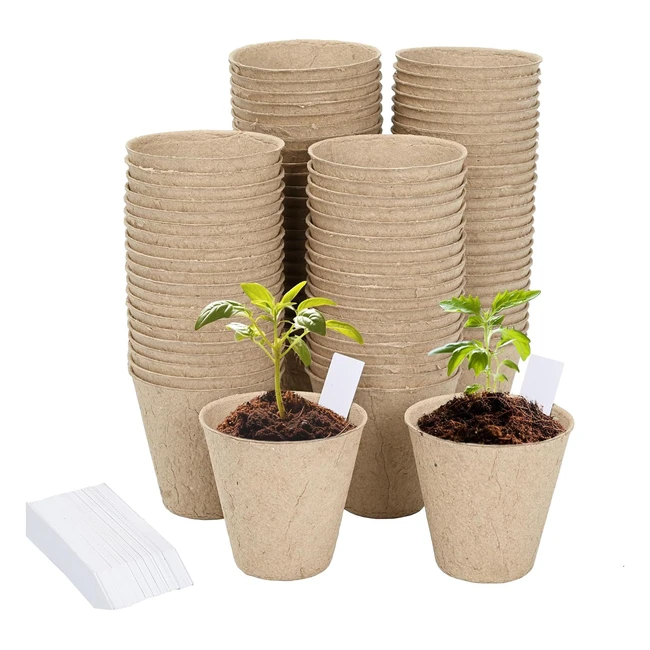 Cymax 100 Pack 8cm Round Fibre Biodegradable Seedling Pot with Plant Labels
