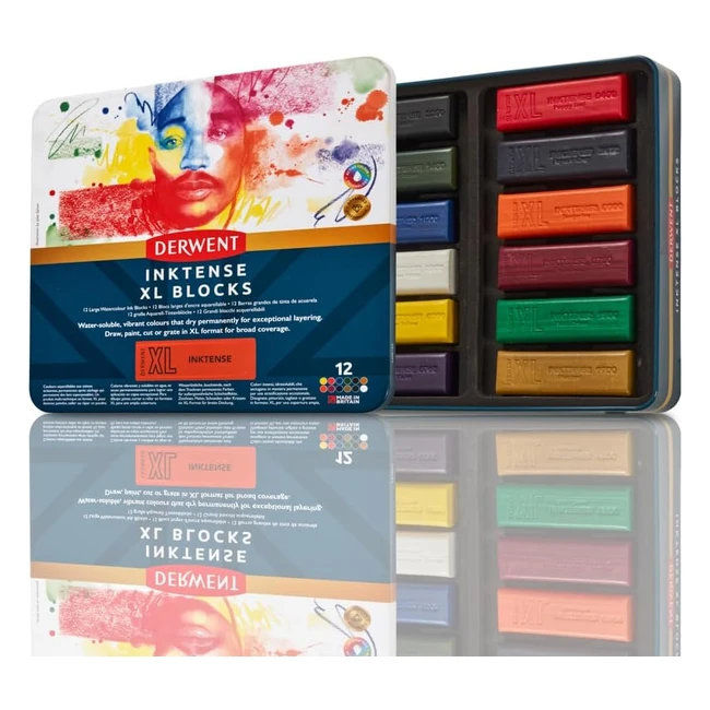 Derwent Inktense XL Blocks - Professional Quality - Set of 12 - Ideal for Sketching and Drawing - 2306162