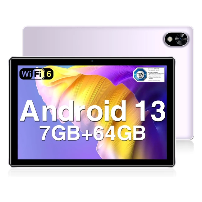 Doogee U9 Android 13 Tablet 10 Inch 7GB 34GB RAM 64GB ROM 1TB TF 20GHz Quad Core Android Tablets 5060mAh Google GMS 5MP CameraBluetooth 5.0 OTG Widevine L1 TV Certified Purple
