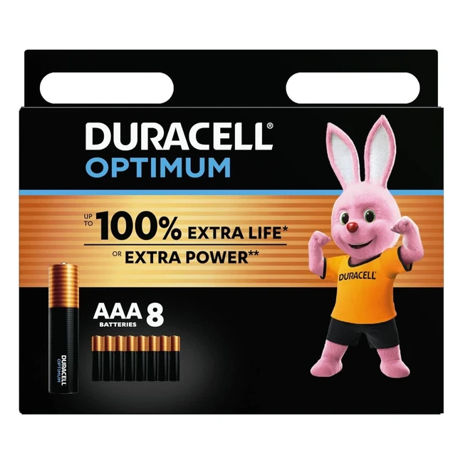 Duracell Optimum AAA Batteries 8 Pack - Up to 100 Extra Life or Power