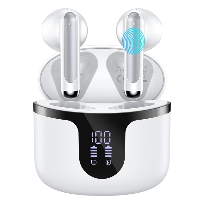 Écouteurs Bluetooth sans fil Casque Bluetooth Hifi 53 Stéréo avec 4 Microphones HD Casque Bluetooth 50 Heures Écran LED Contrôle Tactile Casque Sans Fil Étanche IP7 USB-C Blanc