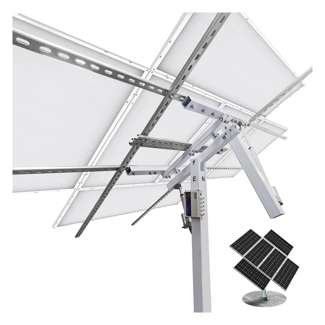 Increase your solar power generation by 40% with the EcoWorthy Solar Panel Dual Axis Tracking System. This complete solar tracker kit features 270° rotation, 2-axis driving, and a sensitive sunshine sensor. It allows your panels to absorb sun irradiance from all sides, generating more power. With its dual-axis design, the mounted panels always face the sunlight, maximizing power generation. Designed to accommodate 6 pieces of 170W EcoWorthy panels, this tracker is perfect for yard, farm, field, and flat roof installations. Its sturdy construction and air speed sensor ensure stability even in windy conditions. Don't miss out on this opportunity to boost your solar power production!