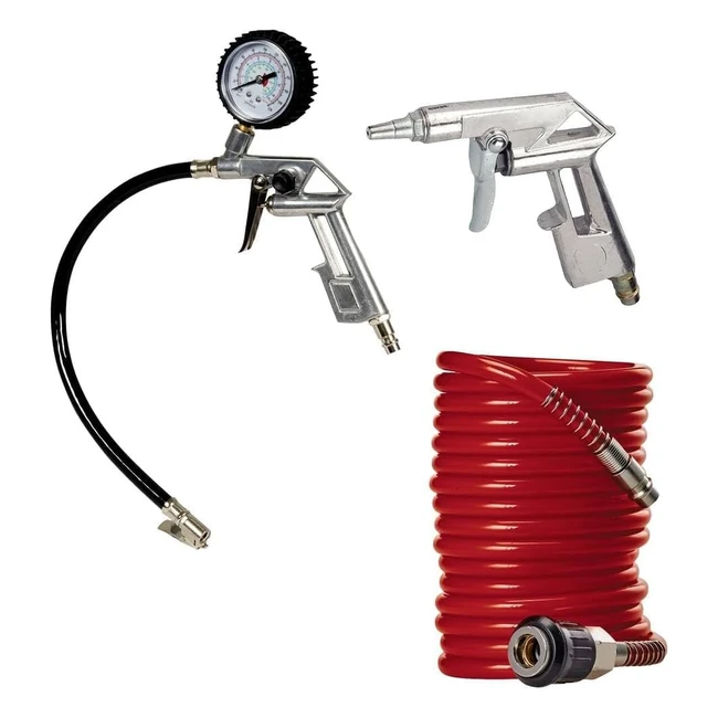 -42%Eilt! 3-teiliges Druckluft Set für alle gängigen Kompressoren mit Arbeitsdruck von 0,8 bar. 5m Kunststoff-Spiralschlauch mit Schnellkupplung für schnelle Nutzung verschiedener pneumatischer Werkzeuge. Blaspistole zur Reinigung des Arbeitsbereichs und z.B. Entfernung von Staub auf lackierten Oberflächen. Reifenfüller mit Manometer für präzise Kontrolle des Reifendrucks und professionelles Befüllen von Auto-, Fahrrad-, Schubkarrenreifen usw. Mehr Produktinformationen entdecken!